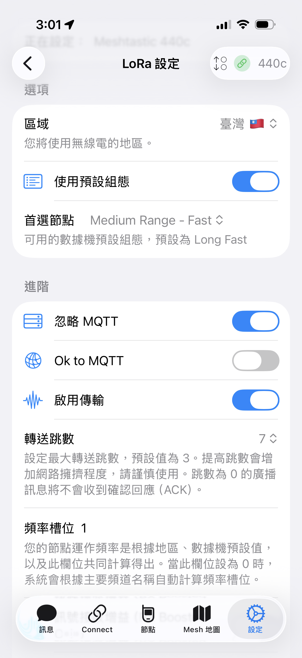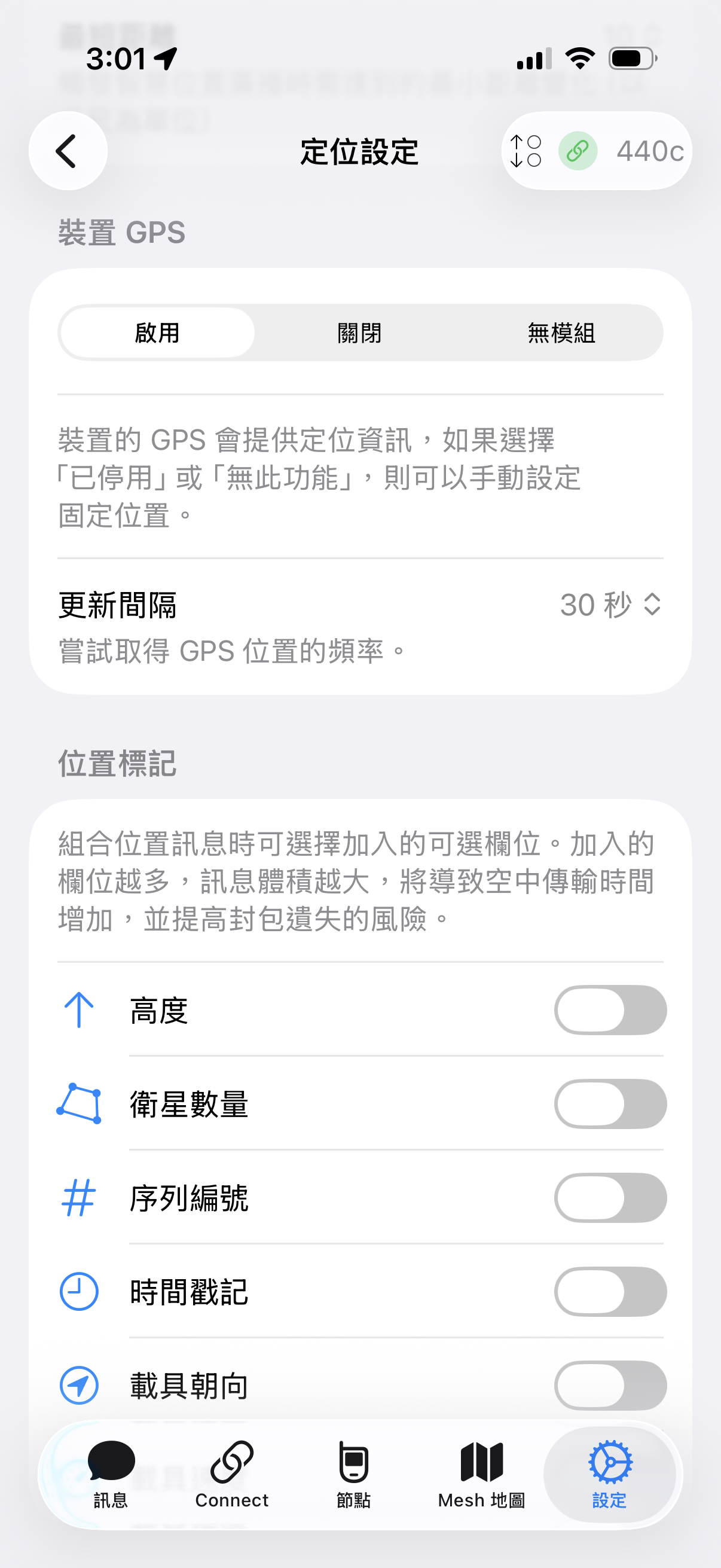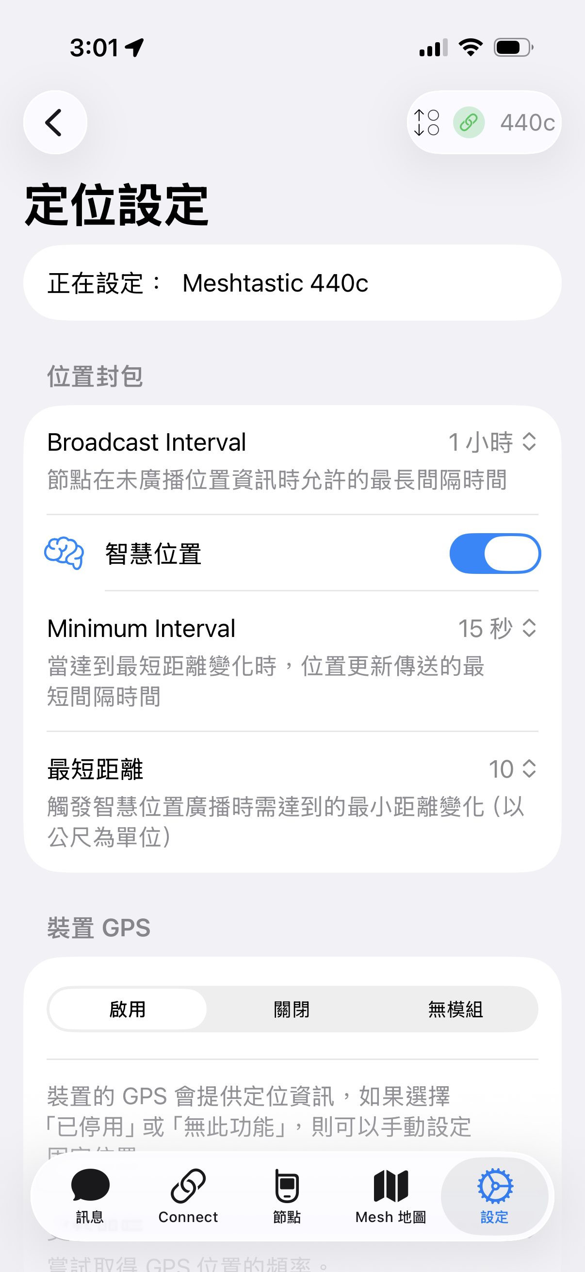 由於 iOS 開發者對隱私的堅持,如果你當初設定節點時,有用 iOS 版本的 APP 覆蓋網頁 QR Code 的設定,那麼您的位置精準度會受限制,此時請使用手機瀏覽器,點選此連結