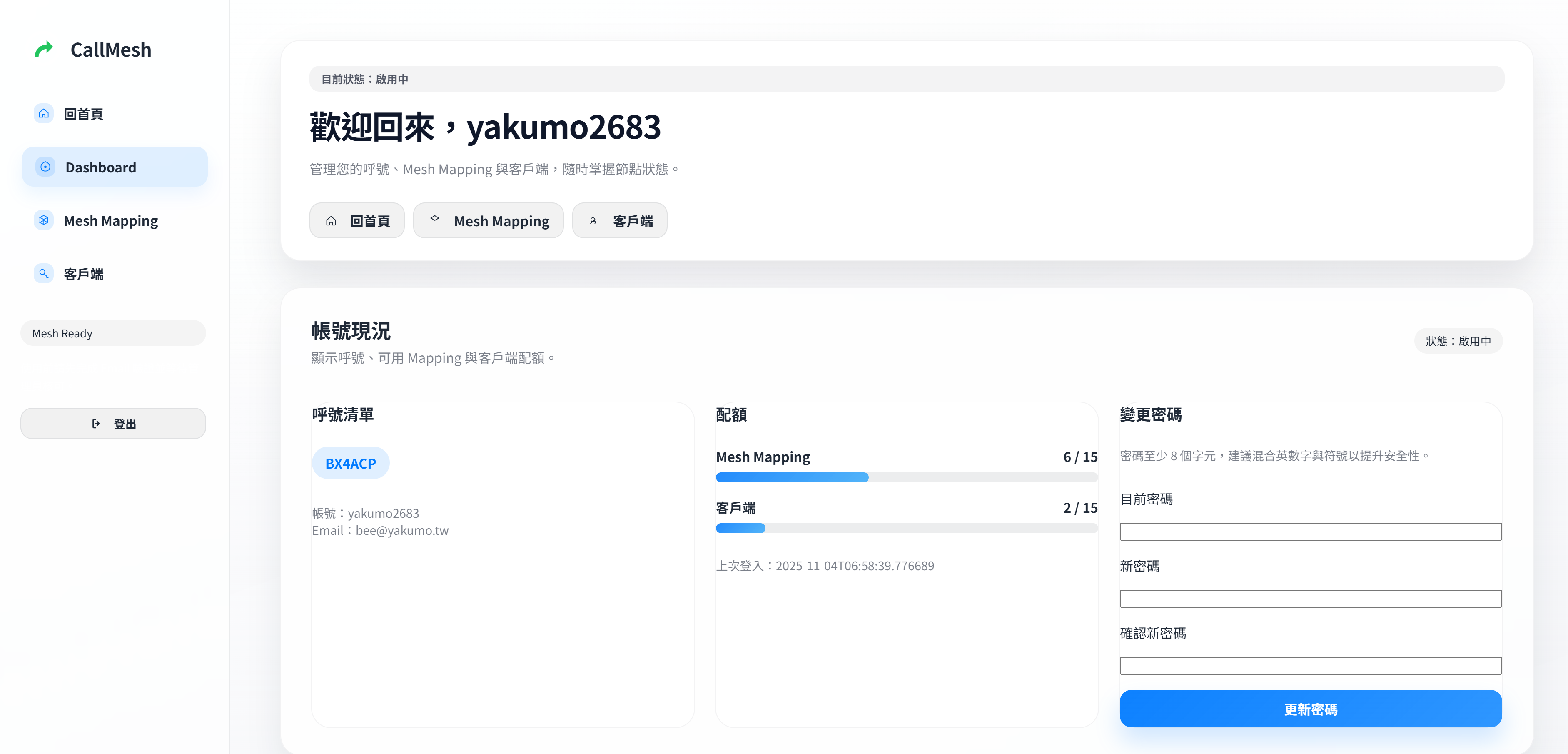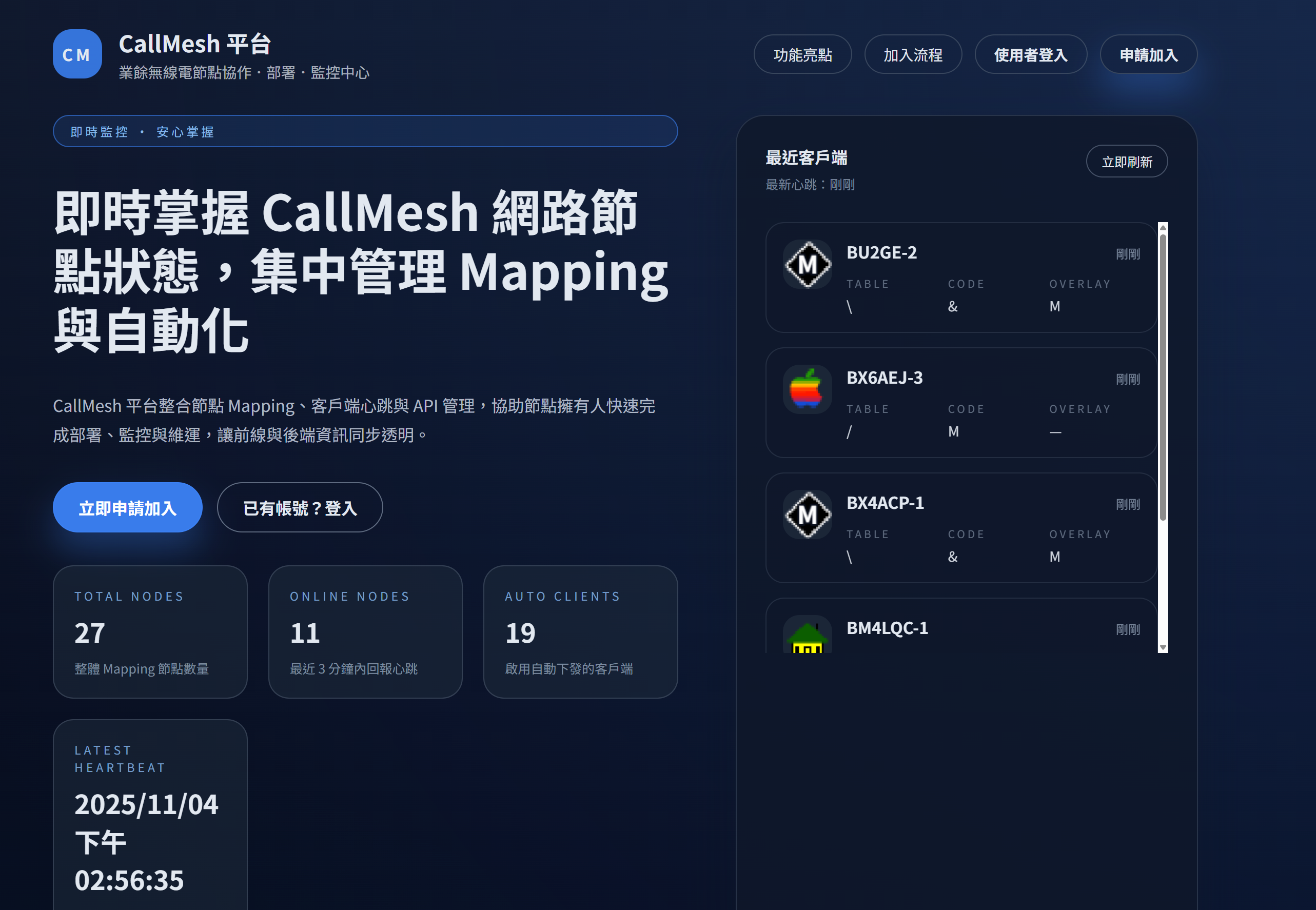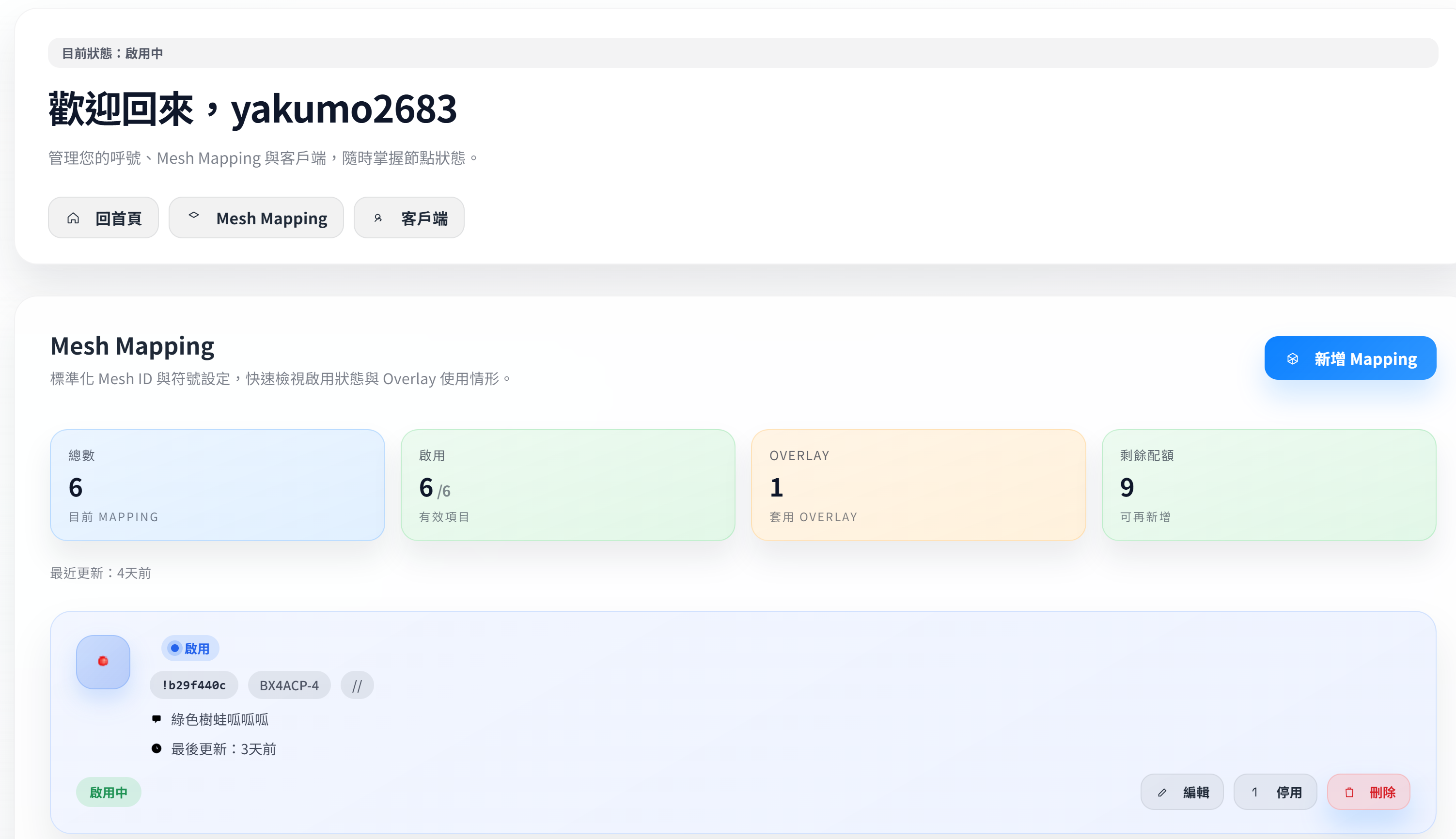 登入後介面如圖,此時請點選「Mesh Mapping」
