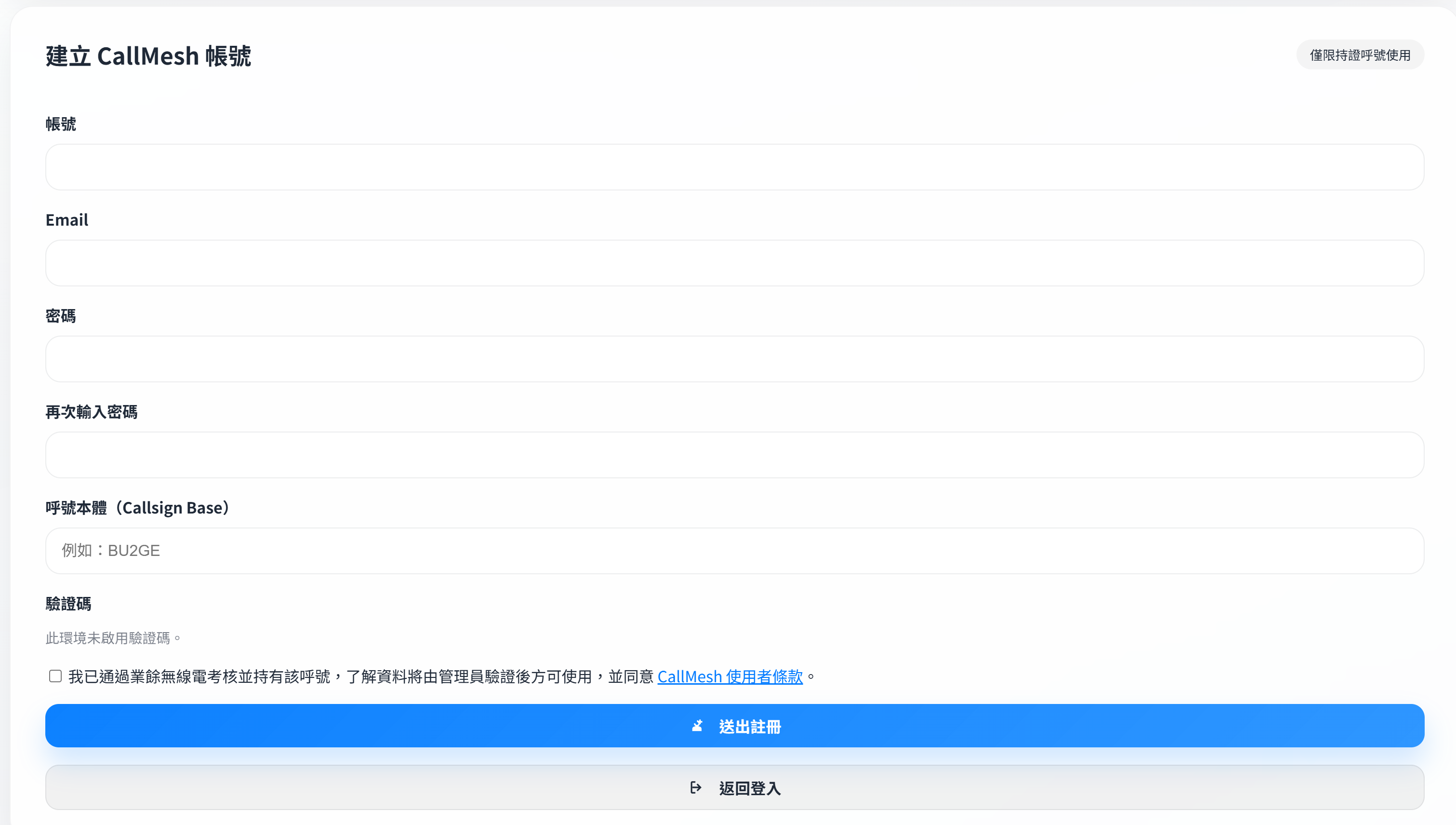 輸入註冊的基本資訊與呼號,且同意使用者條款,點選「送出註冊」